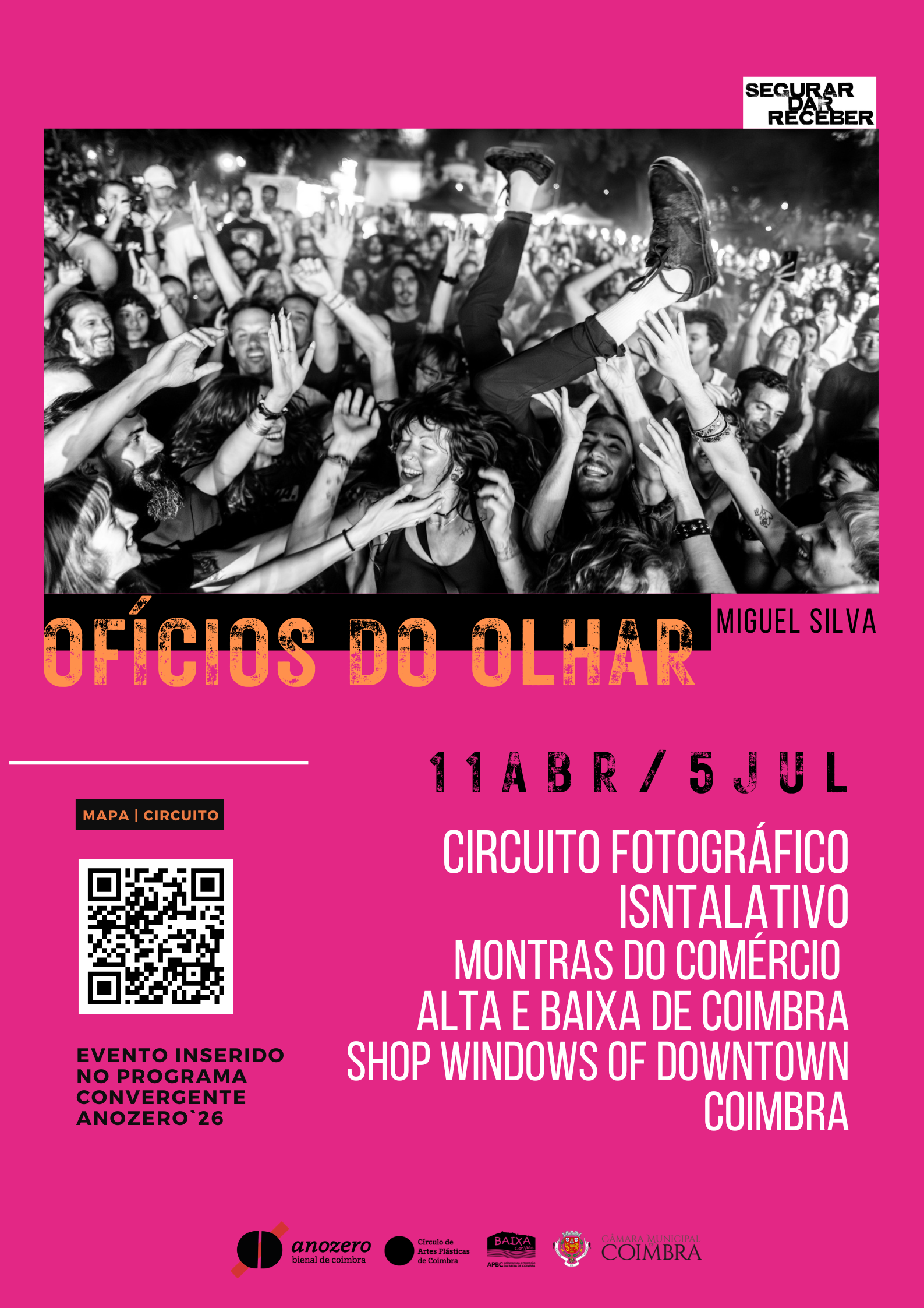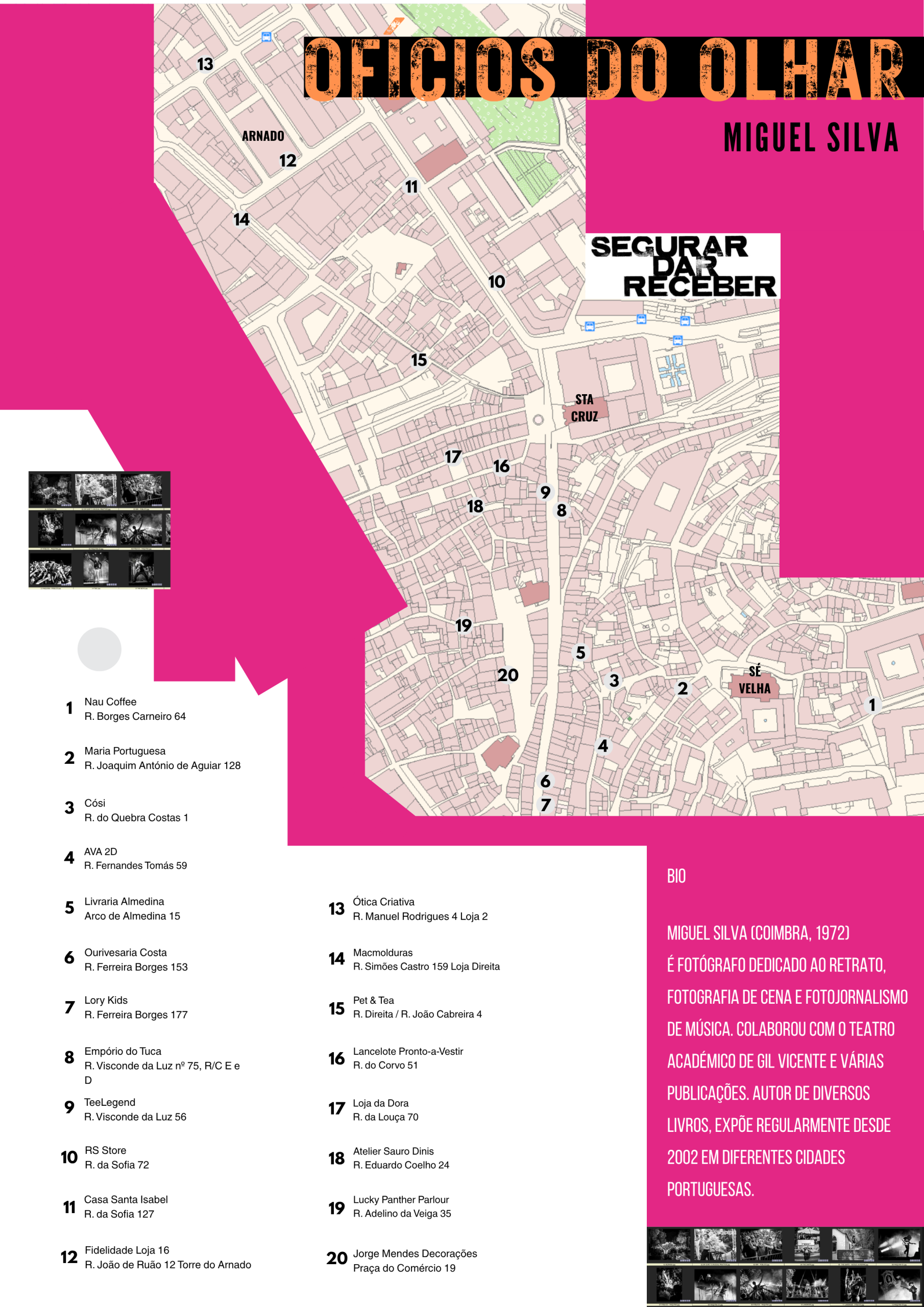 Ofícios do Olhar reúne imagens de concertos, fazendo vibrar, no tecido quotidiano do comércio, a pulsação efémera e intensa da música ao vivo.